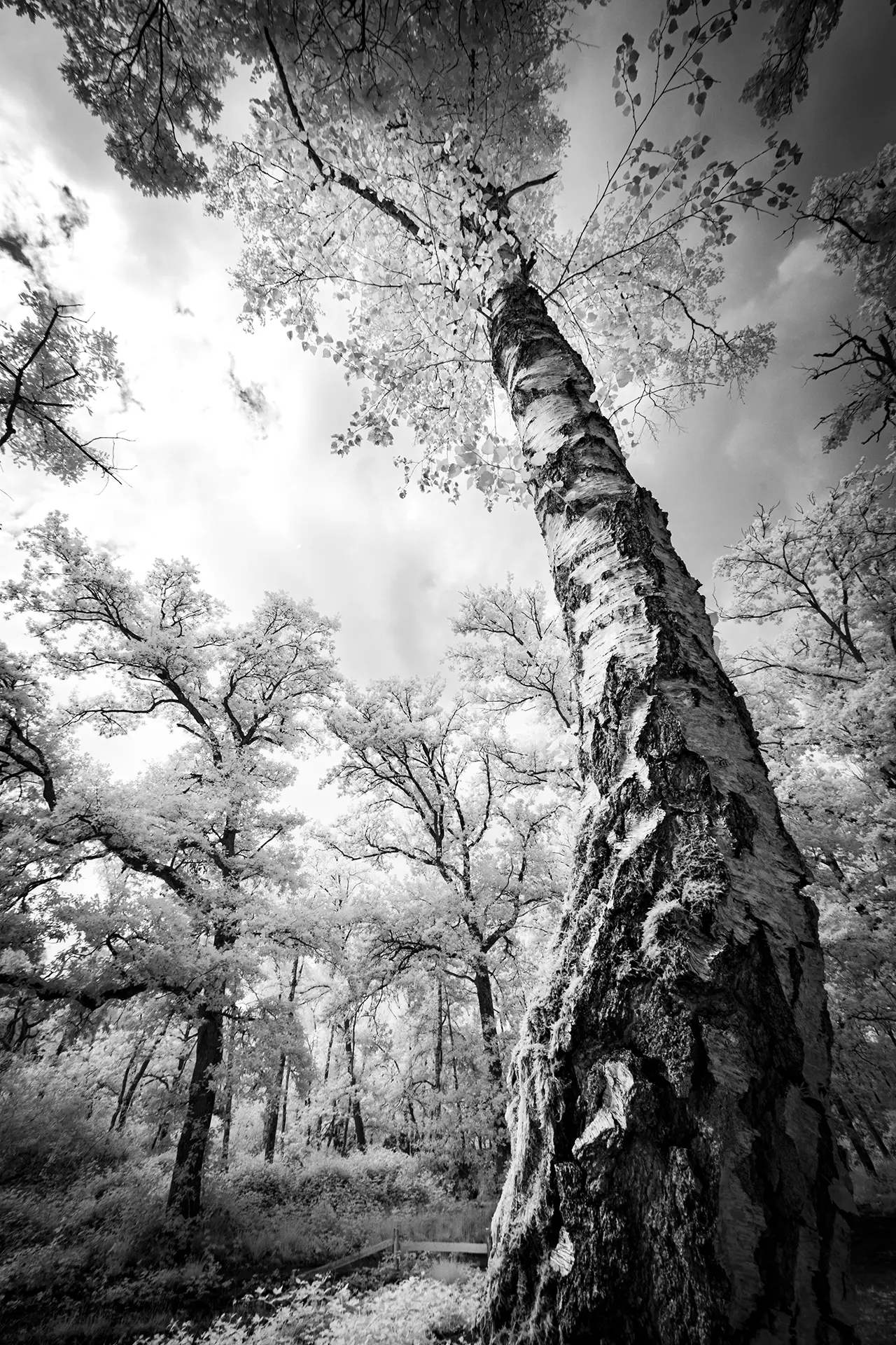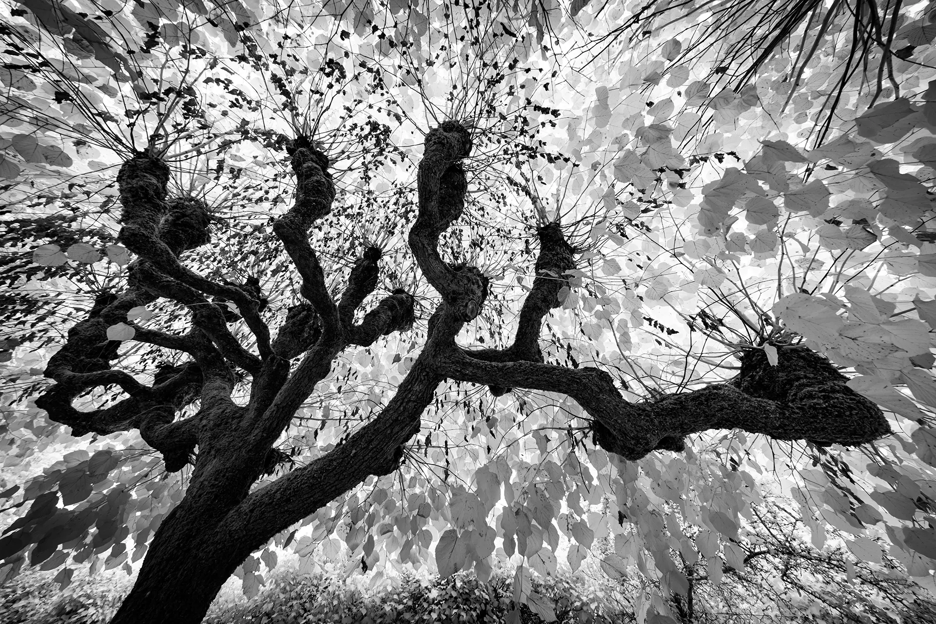 Porté par l’éclat et la transparence du feuillage, mon regard s’ouvre à une autre réalité de l’arbre. Les branches dessinent des architectures fragiles, suspendues entre ciel et terre, tandis que certaines silhouettes figées se dressent telles de véritables sculptures végétales.